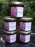 Rosenblüten-Gelee ist ein herrlich duftender Brotaufstrich. Das Rosenblüten-Gelee steht nur in begrenzter Menge zur Verfügung. Frisch aus meinem Garten, werden die Englischen Duftrosen und die Wildrosen zu diesem herrlichen Gelee verarbeitet. Das Rosenblüten- Gelee zaubert uns den Sommer auf den Frühstückstisch.